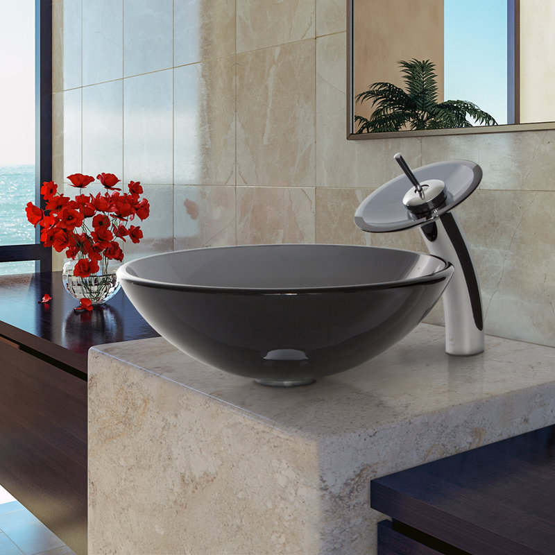 Get Glass Circular Vessel Bathroom Sink With Faucet Gif. Vessel sink faucets are faucets specifically made for vessel sinks, meaning that they are tall enough to accommodate the high rim of a vessel sink. The great thing about glass sinks with faucets is that you get everything you need to get started including the sink, the faucet, a drain and if.